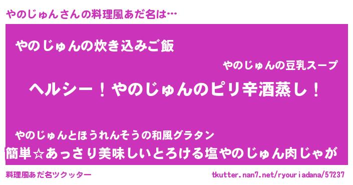 | 胡散臭い通販商品みたいなあだ名 | 『テレビで話題の高麗人参…その名も「やのじゅん」』 |