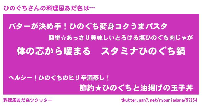 | 女子向けラノベタイトル風あだ名 | 『ひのぐちの雑貨屋さん』『闇のひのぐち』 |