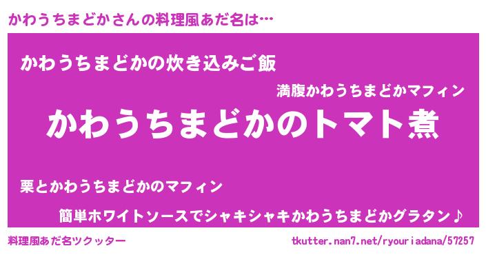 | ヘコむあだ名 | 『かわぷりん』『かわうちまどか(笑)』 |