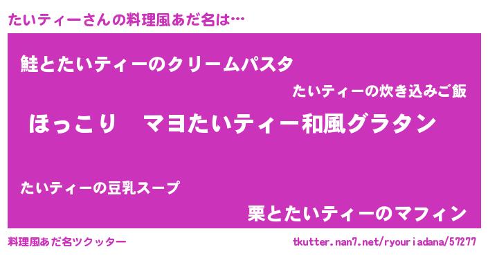 | ヒーロー風カッコイイあだ名 | 『仮面タイダー』『慈愛の使者たいティー』 |