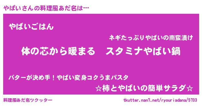 | 女子向けラノベタイトル風あだ名 | 『やばいの雑貨屋さん』『やばい恋絵巻』 |