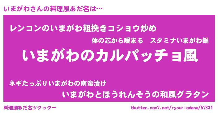 | 意味不明あだ名 | 『住所不定無職いまがわ(1歳)』 |
