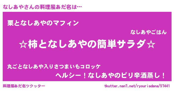 | 恥ずかしいあだ名 | 『ナシアヤデラックス』『なしちん』 |