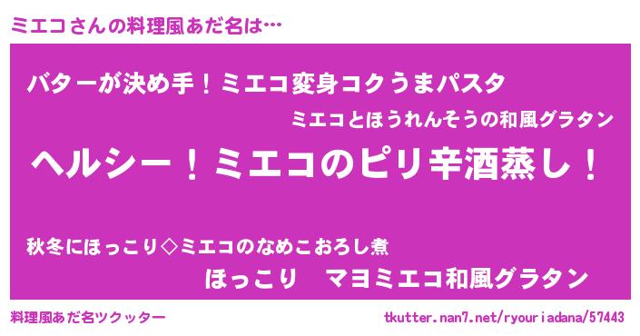 | 男性向けラノベタイトル風あだ名 | 『Re:ミエコから始める異世界生活』 |