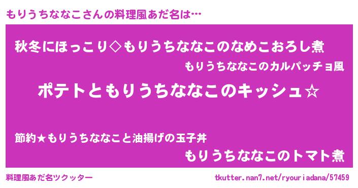 男性向けラノベタイトル風あだ名 | 『もりうちななこの嫁は女の子じゃないと思った?』 |
