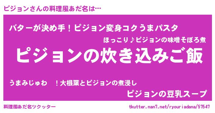| ヒーロー風カッコイイあだ名 | 『慈愛の使者ピジョン』『魔戒騎士ピジ』 |