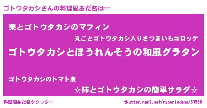 | 意味不明あだ名 | 『つくし科ゴトウタカシ属』 |