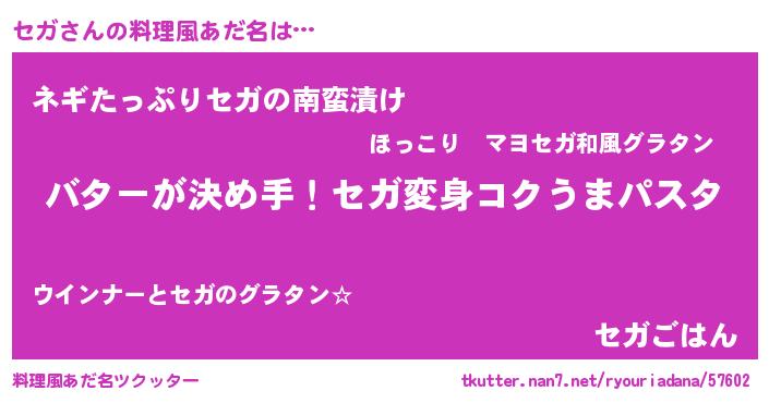 | 女子向けラノベタイトル風あだ名 | 『セガ恋絵巻』『セガ伯爵の花嫁』 |