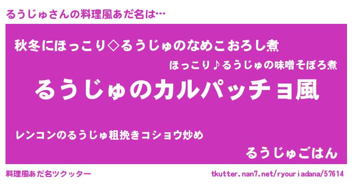 | 男性向けラノベタイトル風あだ名 | 『魔弾の王とるうじゅ』『るうじゅの憂鬱』 |