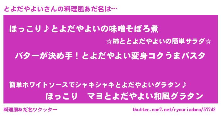| ヘコむあだ名 | 『とよふぇ~』『とよっ子』『つくし』 |