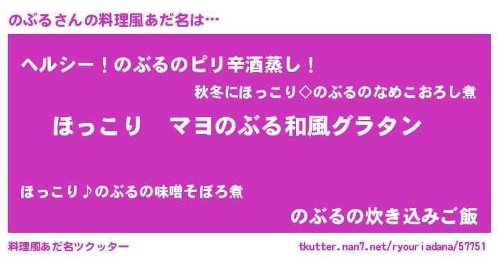 | 男性向けラノベタイトル風あだ名 | 『この素晴らしい世界にのぶるを!』 |