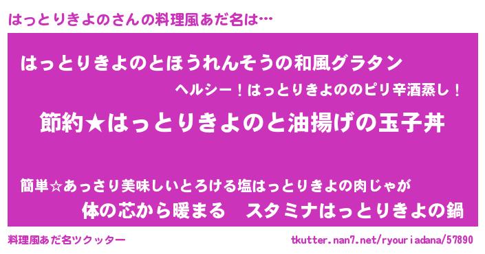| 胡散臭い通販商品みたいなあだ名 | 『モテモテ間違いなし霊験あらたかなお札…その名も「はっとりきよの」』 |