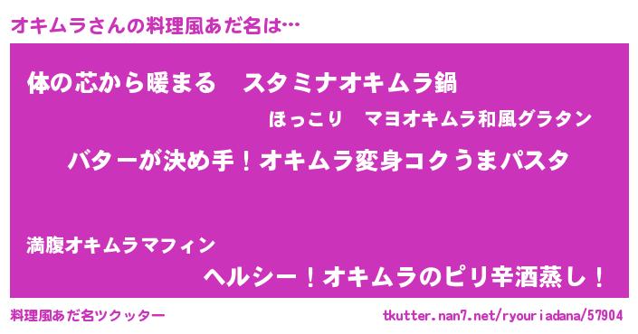 | 男性向けラノベタイトル風あだ名 | 『ノーゲーム・ノーオキムラ』 |