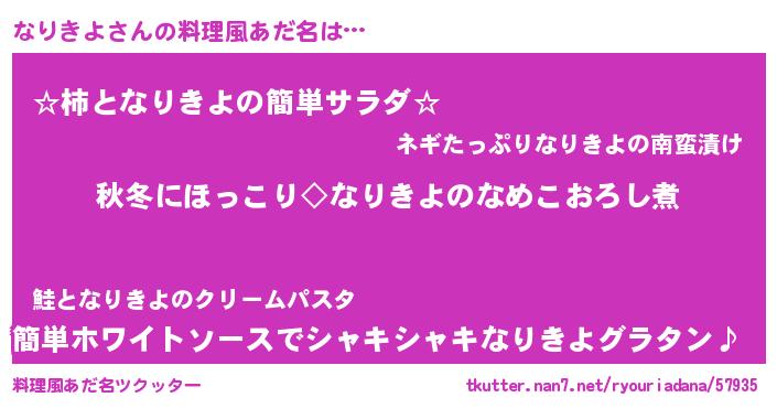 男性向けラノベタイトル風あだ名 | 『なりきよに滅ぼされるだけの簡単なお仕事です』 |