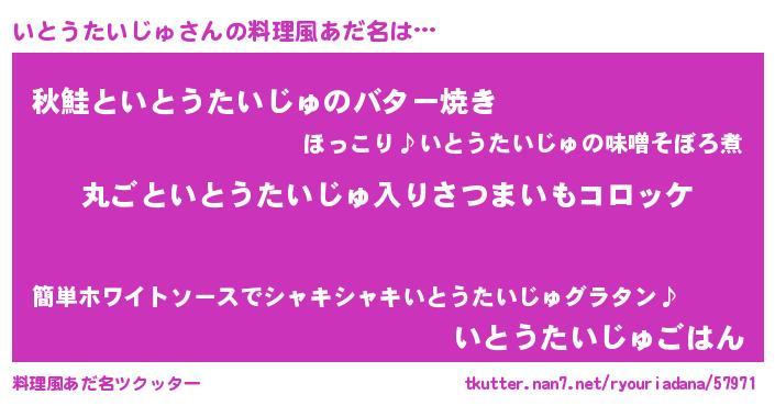 | 女子向けラノベタイトル風あだ名 | 『乙女ゲームの破滅フラグしかない悪役いとうたいじゅに転生してしまった…』 |