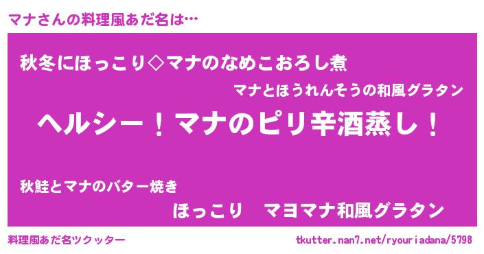 | ヒーロー風カッコイイあだ名 | 『究極戦士マナ』『仮面マナダー』 |