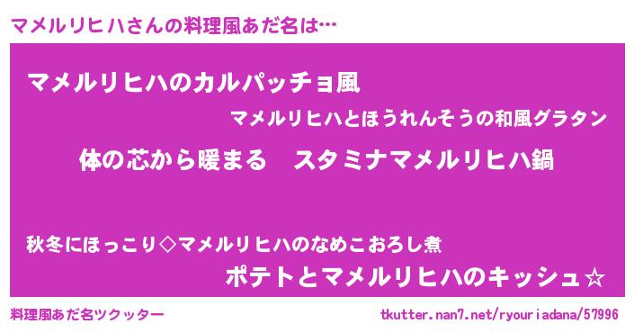 | ヒーロー風カッコイイあだ名 | 『ウルトラマメルリヒハマン』 |