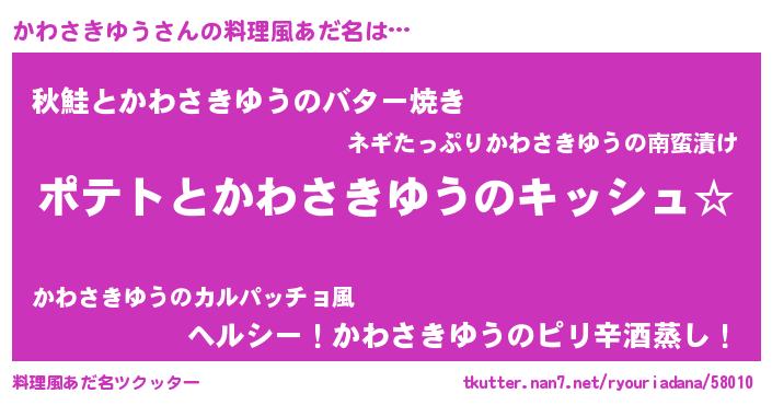 | ヒーロー風カッコイイあだ名 | 『幻影騎士カワ』『ネオカワサキユウ』 |