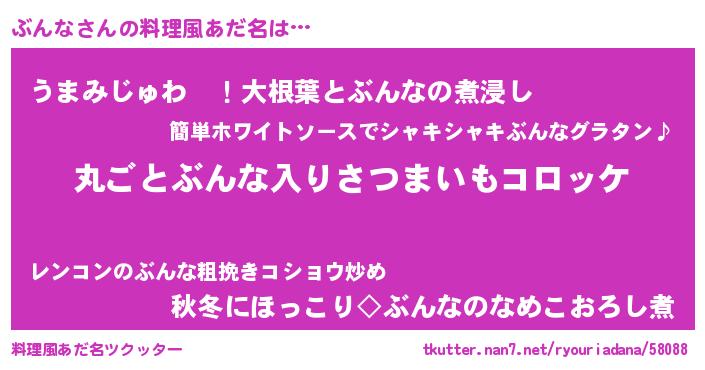 | 意味不明あだ名 | 『住所不定無職ぶんな(9歳)』『自称ぶんな』 |