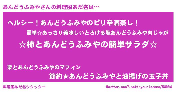 | 女子向けラノベタイトル風あだ名 | 『シンデレラあんどうふみや家の靴箱館』 |
