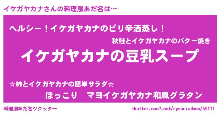 | 胡散臭い通販商品みたいなあだ名 | 『信頼と実績のサプリメント…その名も「イケガヤカナ」』 |