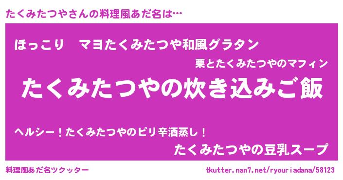 | 意味不明あだ名 | 『住所不定無職たくみたつや(71歳)』 |