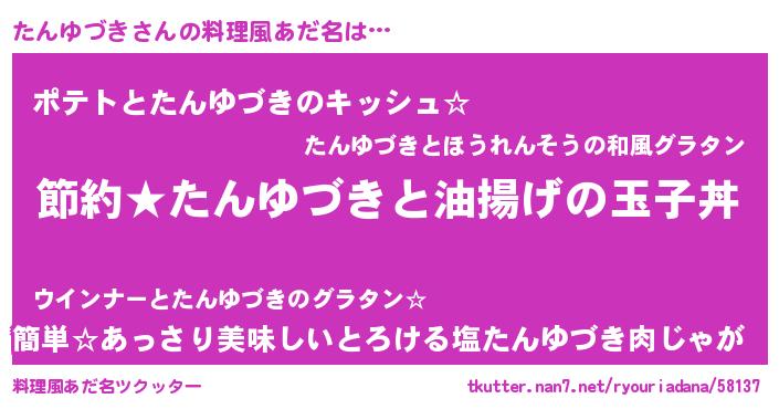 | 男性向けラノベタイトル風あだ名 | 『タンユヅキアートオンライン』 |