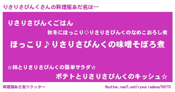 | 胡散臭い通販商品みたいなあだ名 | 『必ず成功するブレスレット…その名も「りさりさぴんく」』 |