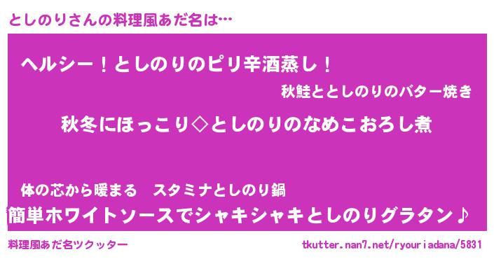 | ピコ太郎風あだ名 | 『トシ次郎』『ピコト郎』『ピト二郎』 |