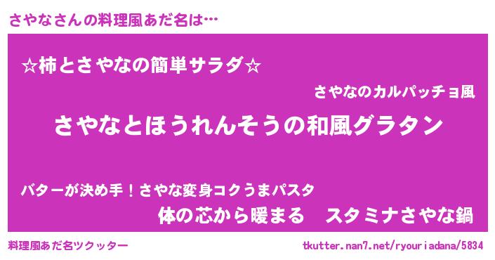 | 女子向けラノベタイトル風あだ名 | 『さやなの玉の輿計画!』『さやな恋絵巻』 |