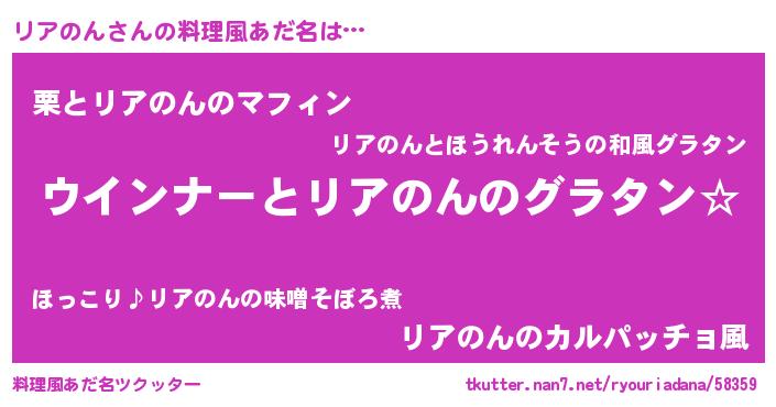 | 意味不明あだ名 | 『リアのんフォーエバー』『自称リアのん』 |
