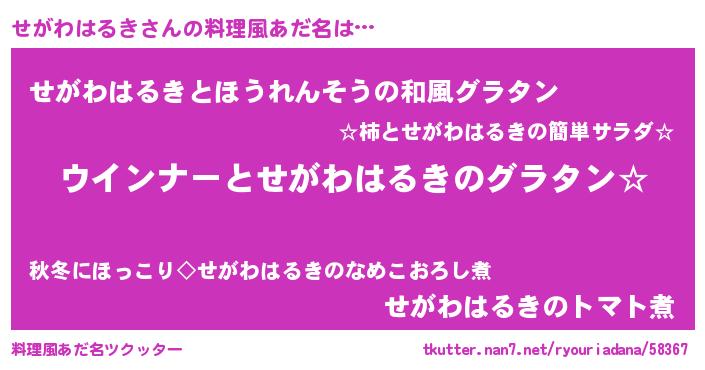 | ヘコむあだ名 | 『なまこ酢』『せがっふぃ~』 |