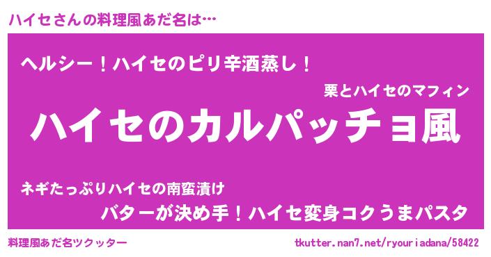 | ヘコむあだ名 | 『ハイにー』『ハイを』『ハイセ(笑)』 |