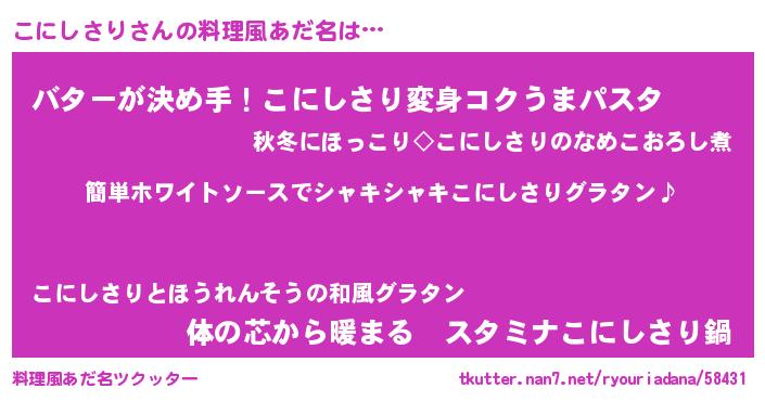 | ヘコむあだ名 | 『こに太郎』『豆乳』『こにふぇ~』 |
