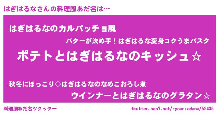 | ポケモン風あだ名 | 『ヒハギハルナ』『ハーギイ』 |
