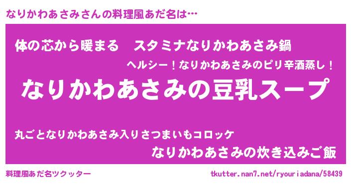 | 意味不明あだ名 | 『とにかく怪しいなりかわあさみ』 |