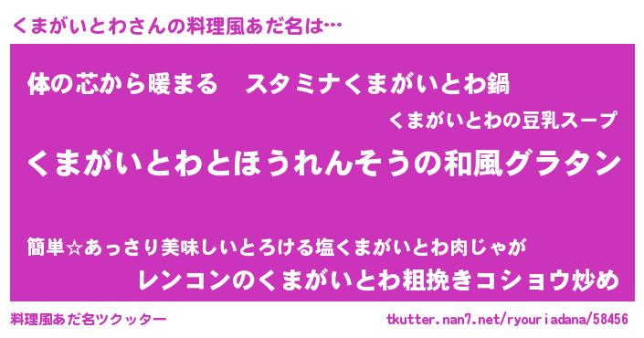 | 肩書あだ名 | 『くまがいとわ中将』『くまがいとわ総統』 |