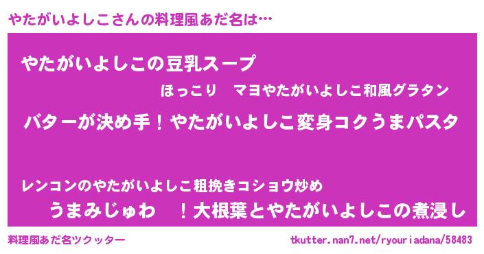 | ポケモン風あだ名 | 『ヤックウザ』『ヒヤタガイヨシコ』 |