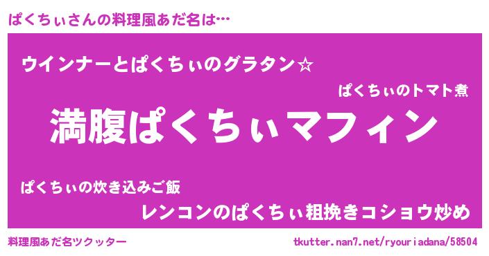 | ヒーロー風カッコイイあだ名 | 『ネオパクチィ』『ウルトラぱくちぃマン』 |