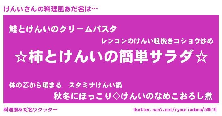 | ヘコむあだ名 | 『豆乳』『けんい(笑)』『けんを』 |
