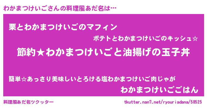 | 男性向けラノベタイトル風あだ名 | 『ワカマツケイゴアートオンライン』 |