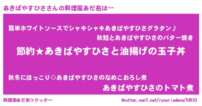 | ポケモン風あだ名 | 『アキチュウ』『ヒアキバヤスヒサ』 |