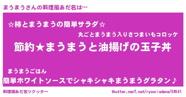 | 男性向けラノベタイトル風あだ名 | 『まうまうの憂鬱』『魔弾の王とまうまう』 |