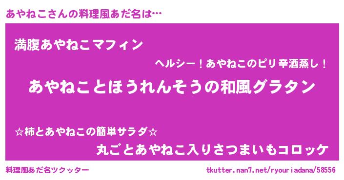 | ヒーロー風カッコイイあだ名 | 『ネオアヤネコ』『仮面アヤダー』 |
