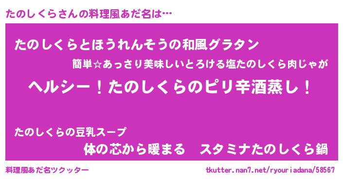 たのしくらさんの料理風あだ名をツクッター!
