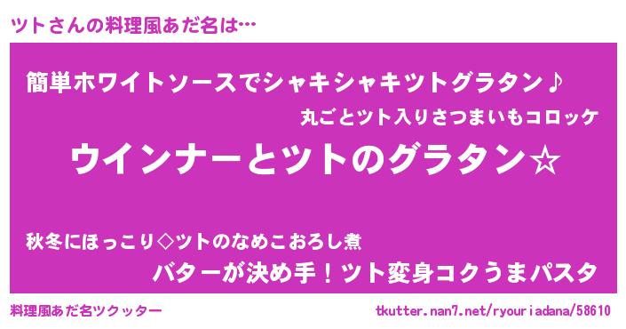 | ヘコむあだ名 | 『なまこ酢』『ツトっ子』『ツトもー』 |