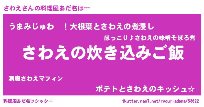 | 意味不明あだ名 | 『さわえフォーエバー』『ペロリンさわえ』 |