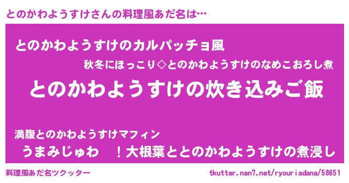 | 意味不明あだ名 | 『住所不定無職とのかわようすけ(81歳)』 |