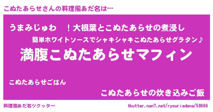 | 意味不明あだ名 | 『永久保存こぬたあらせ』 |