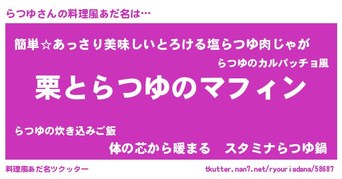 | ヒーロー風カッコイイあだ名 | 『ネオラツユ』『ウルトラらつゆマン』 |